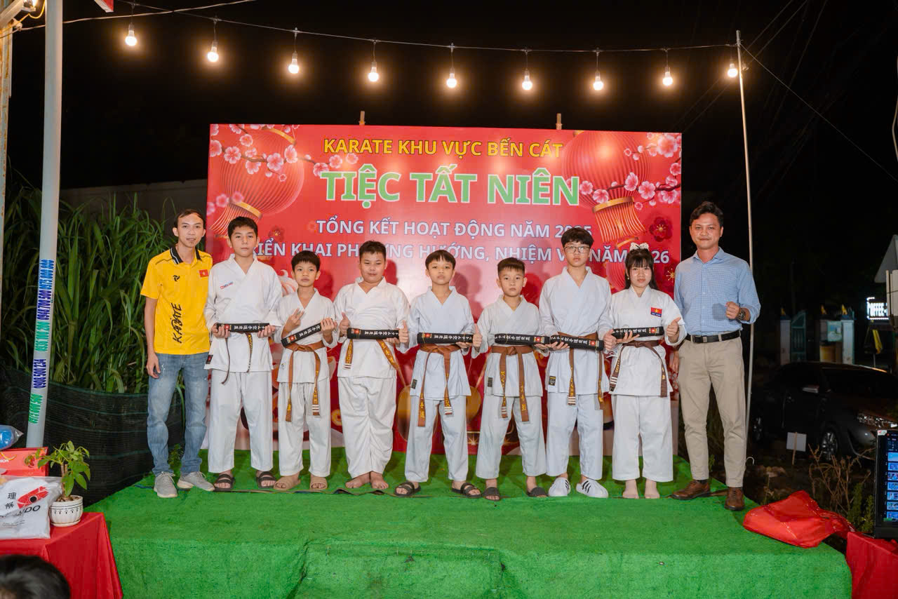 Buổi tiệc tất niên không chỉ là dịp tổng kết, khen thưởng mà còn là cơ hội để Ban Huấn luyện, võ sinh và phụ huynh tăng cường sự gắn kết, tạo động lực và quyết tâm bước vào năm 2026 với tinh thần đoàn kết, kỷ luật, hướng đến mục tiêu xây dựng Karate Bến Cát ngày càng vững mạnh và phát triển bền vững