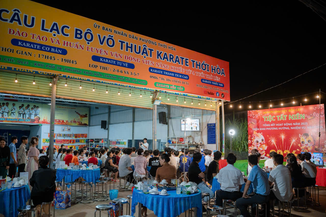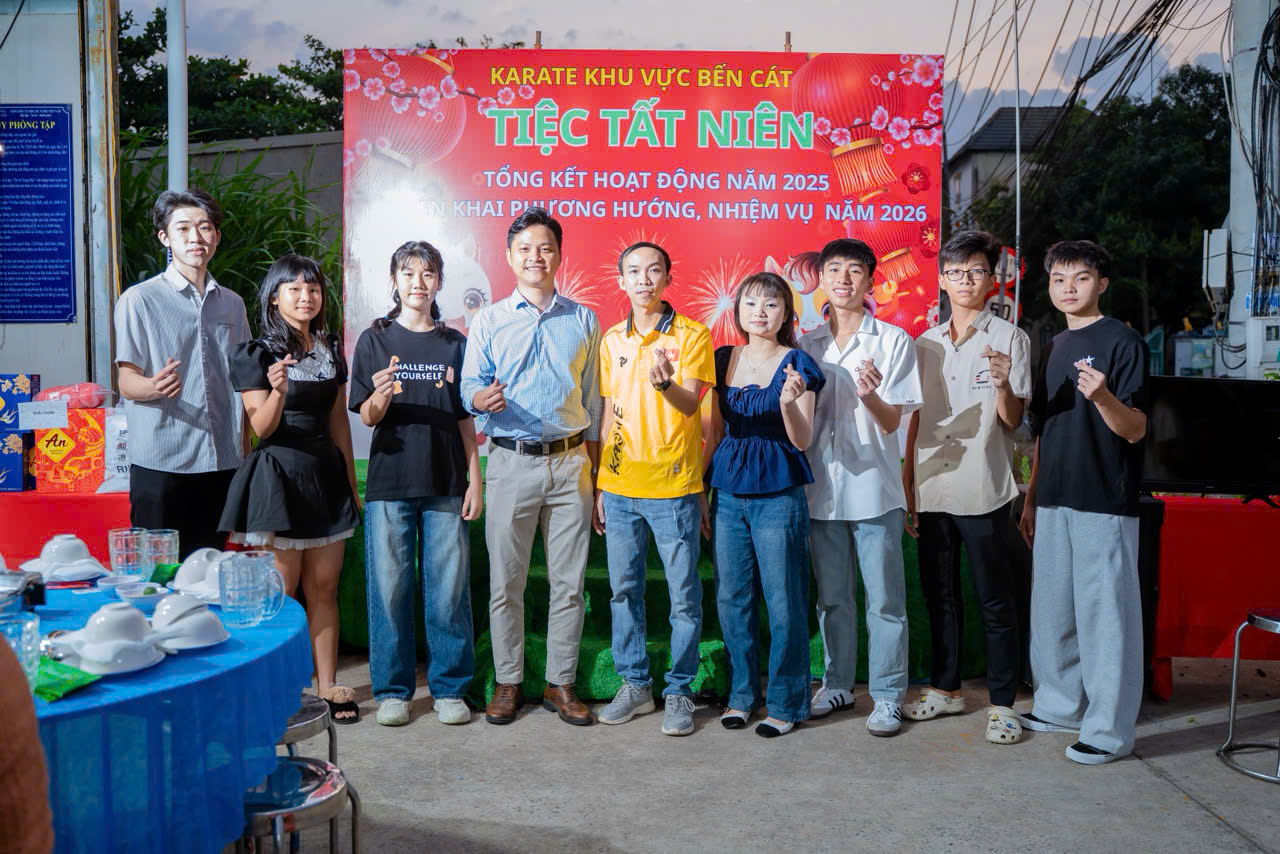 Ngày 31/01/2026, Karate Bến Cát đã tổ chức Tiệc tất niên – tổng kết hoạt động năm 2025 và triển khai phương hướng, nhiệm vụ năm 2026 trong không khí ấm áp, đoàn kết và đầy ý nghĩa.